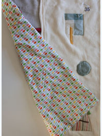 Plaid: 58x78 cm en polaire et coton orné de différentes applications avec tissus, rubans, dentelles, pompons …